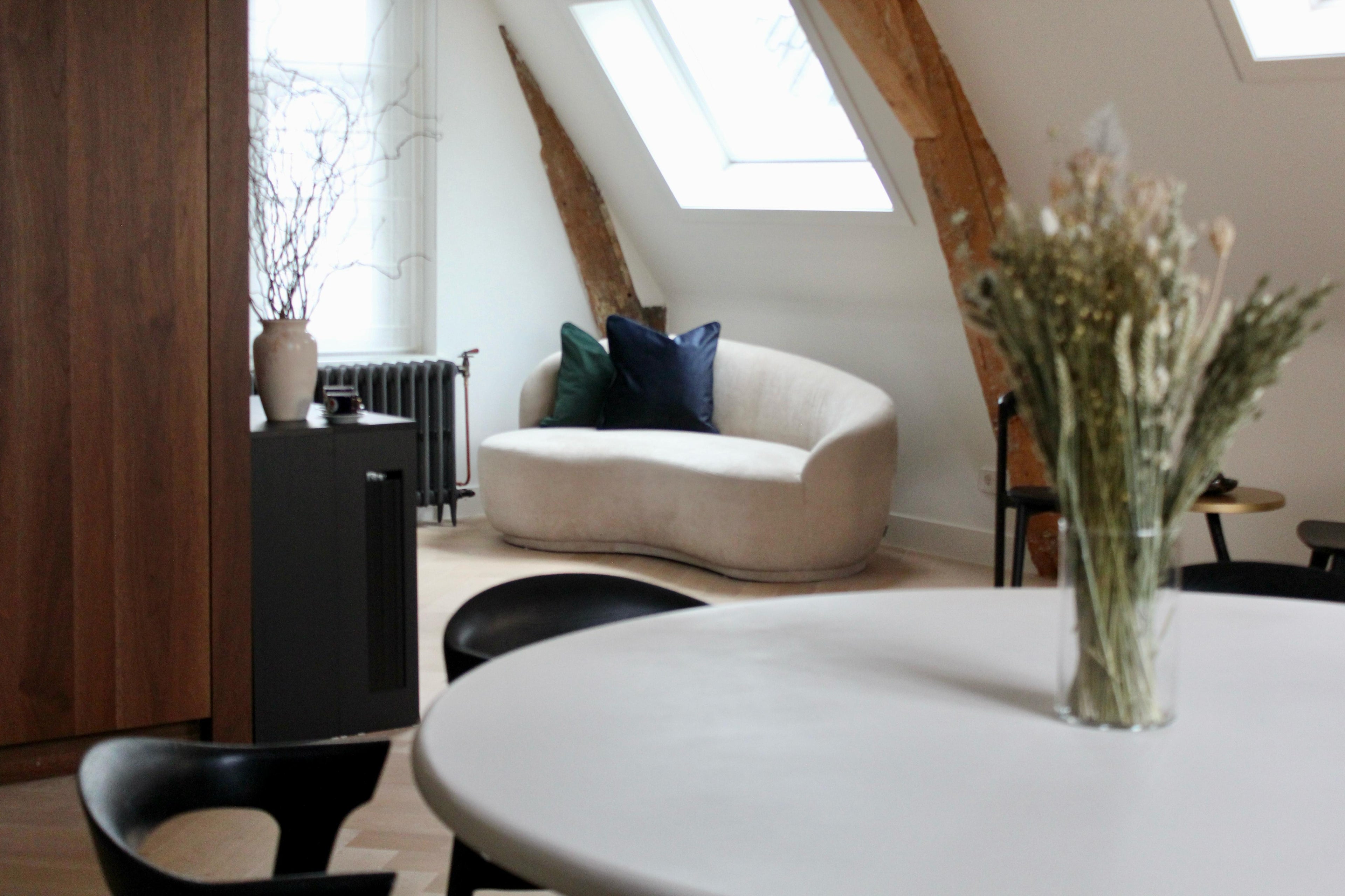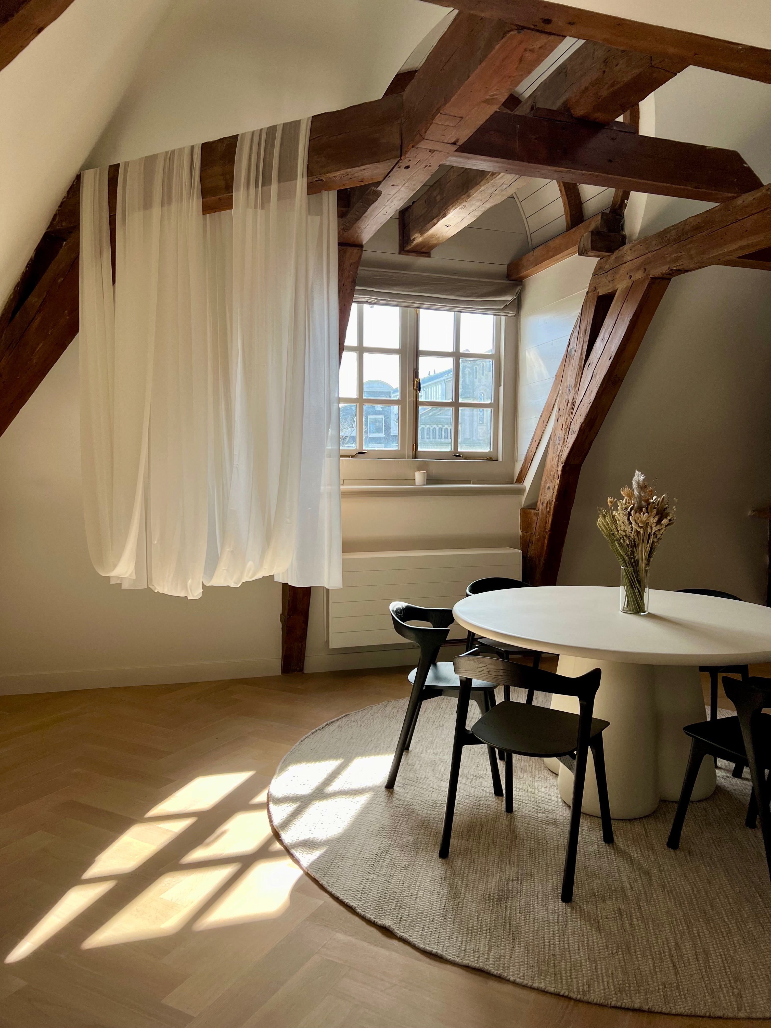 Silk Huis offers an intimate and flexible setting for gatherings and events. Our space comfortably seats up to 20 guests across two tables: 8 at a round white table and 12 at a black rectangular table. For standing events, we can accommodate up to 35 guests, making it ideal for workshops, networking events, and creative gatherings.